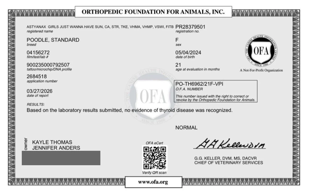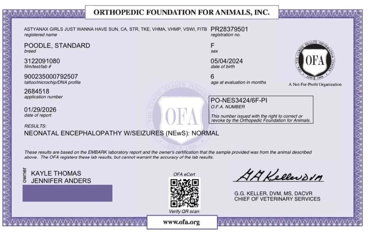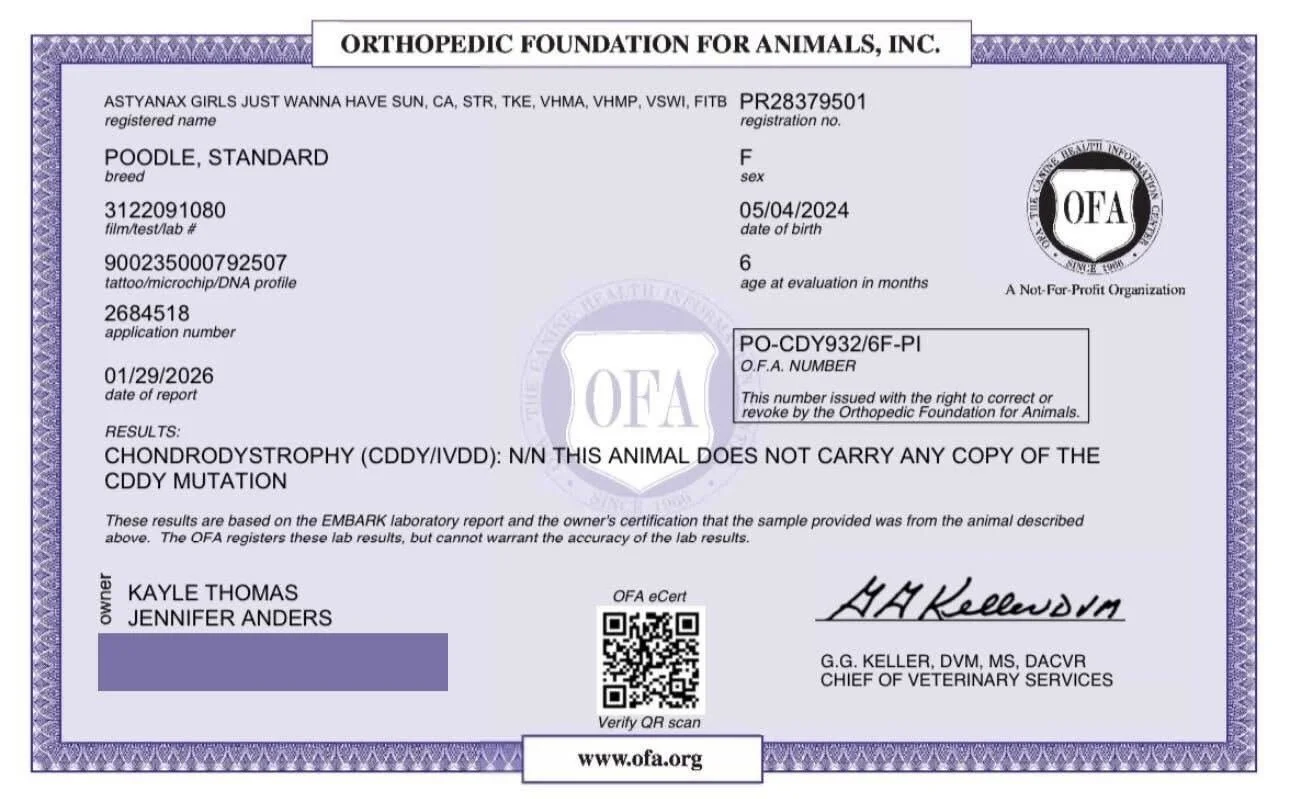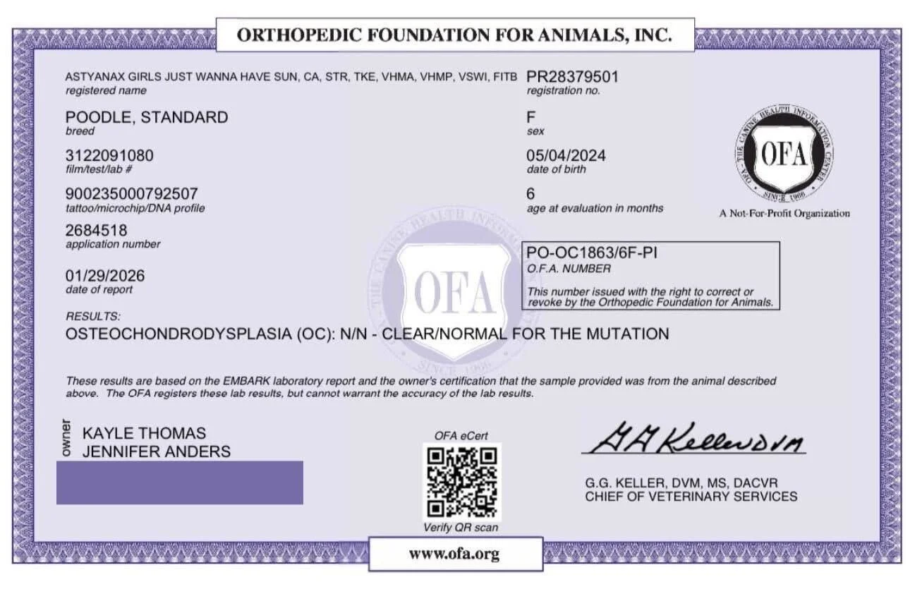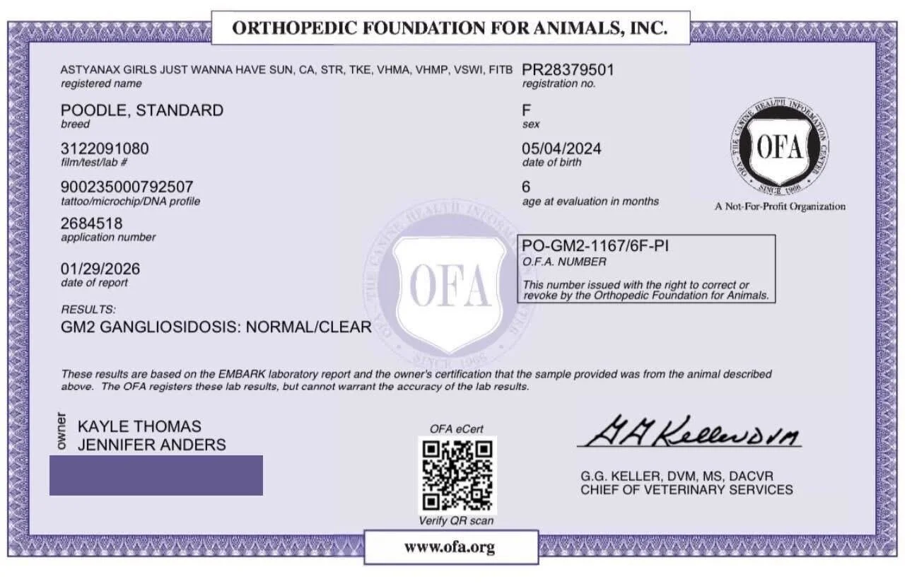 Malibu is prissy and poodley in all the right ways, elegant, a little fancy, but always full of enthusiasm and fun. She loves life, she loves to learn, and she loves being part of the action. To us, she isn’t just a service dog, show dog, or sport dog. She’s our partner, our companion, and truly the heart of our kennel. With her brains, balance, and joy for life, Malibu is the perfect foundation for everything we’re building.