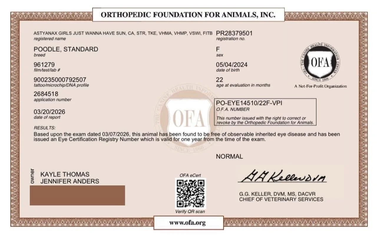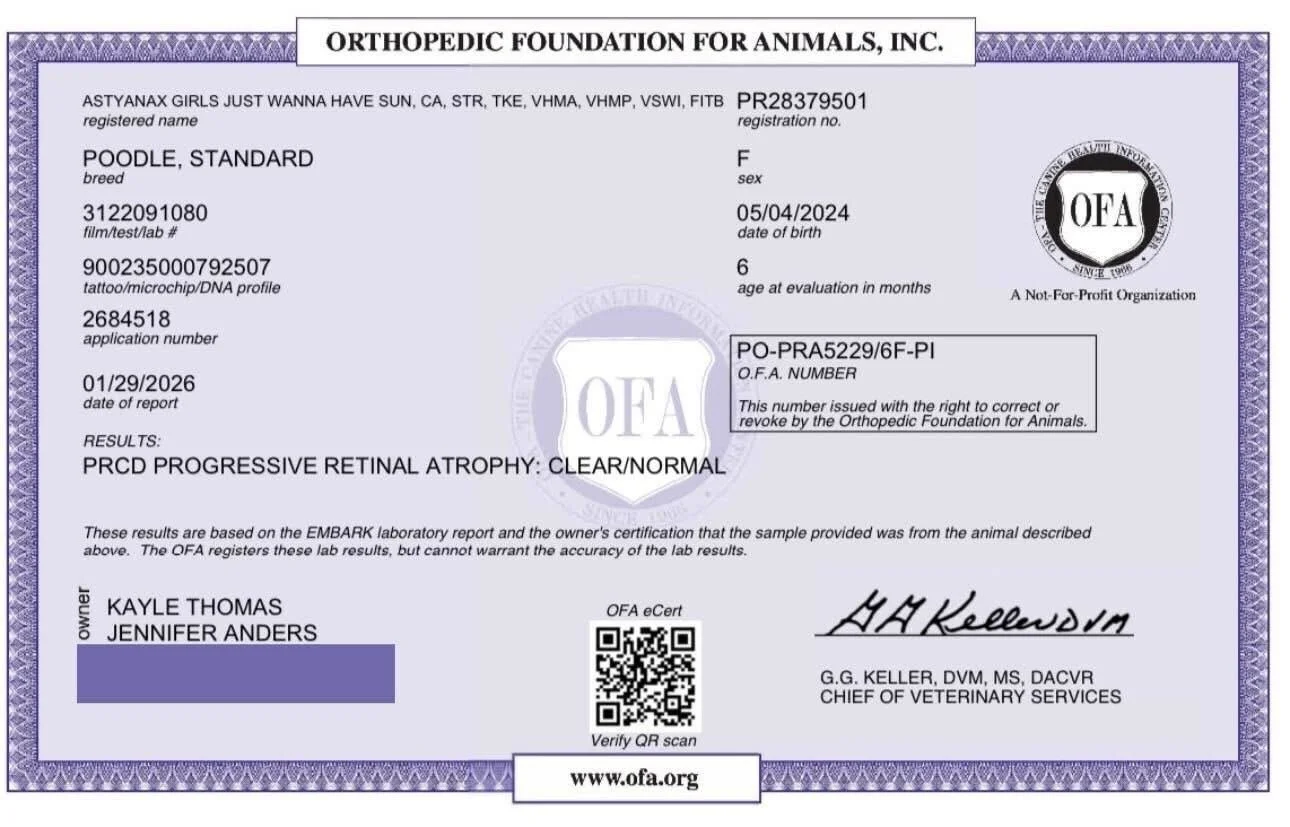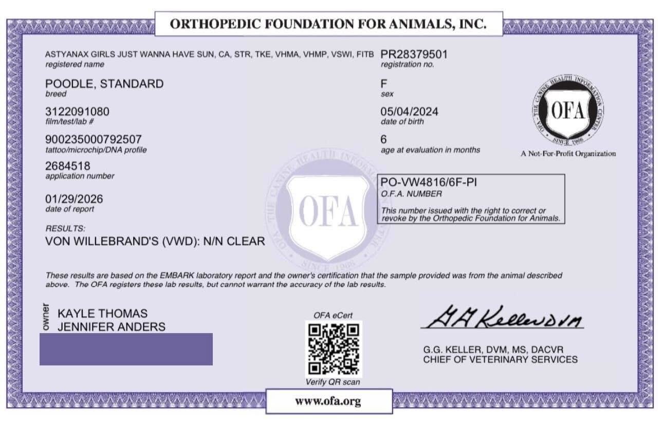 All health testing will be completed prior to breeding.
