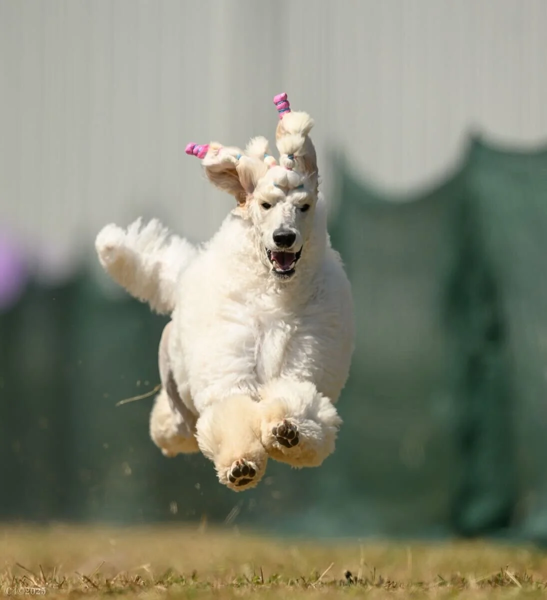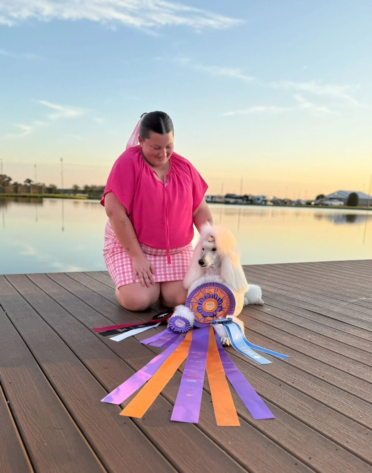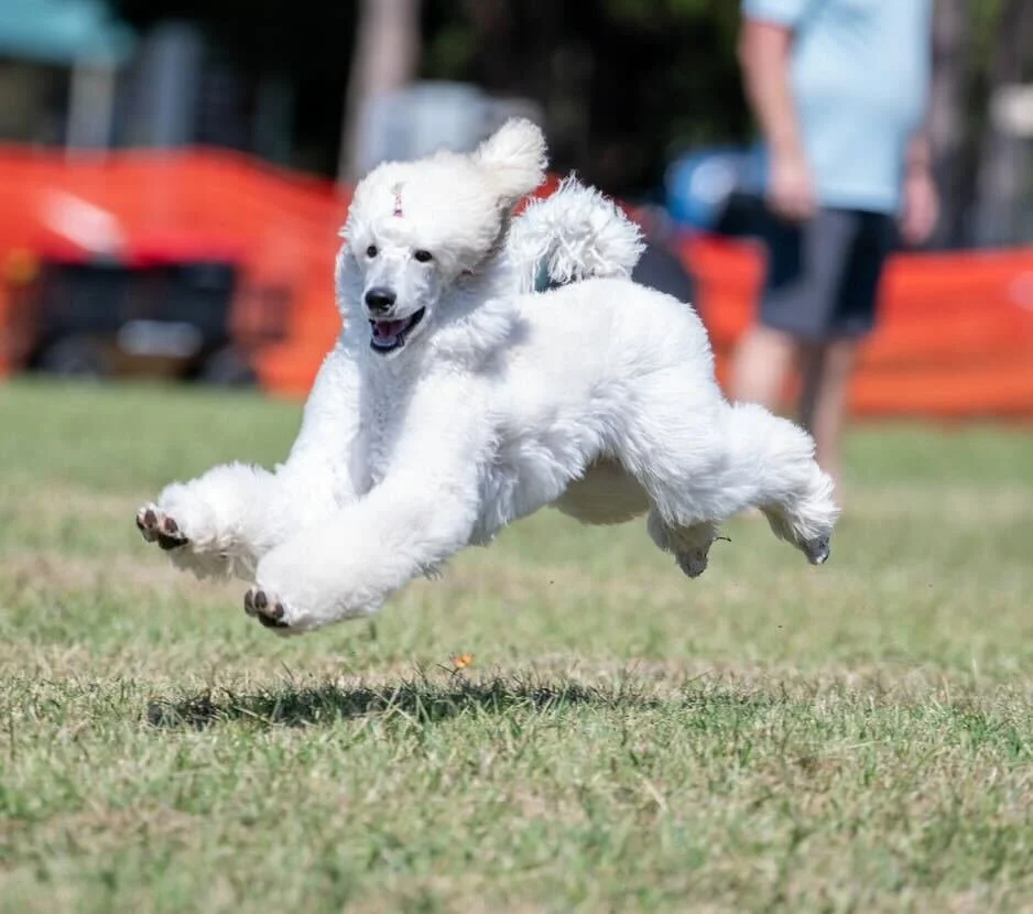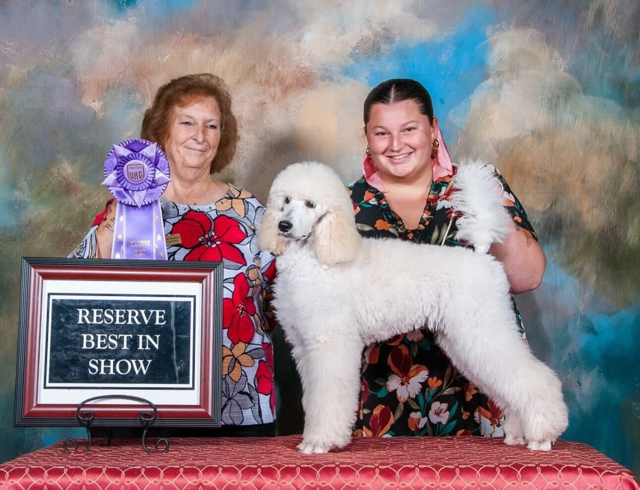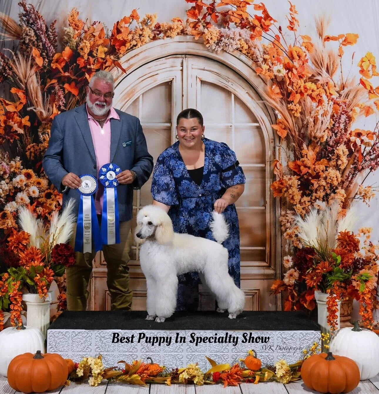 Malibu began her show career with a Reserve Best Puppy in Show, quickly followed by Best Puppy in Specialty at the 2024 United Poodle Association Eastern Specialty. She completed her UKC Championship in just two weekends and her Grand Championship in only three weekends, all before nine months of age.
